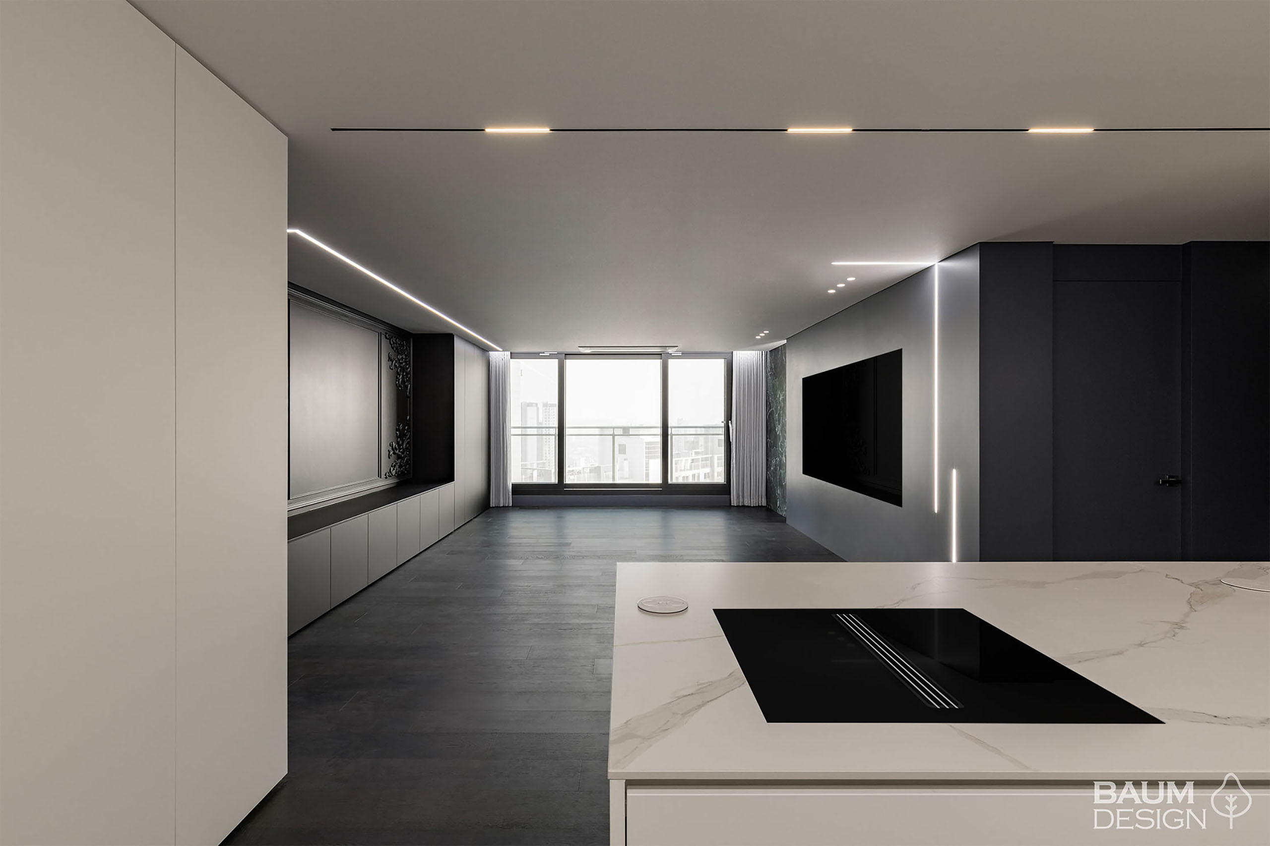 모던 클래식한 스타일에 대비되는 톤이 매력적인 인테리어