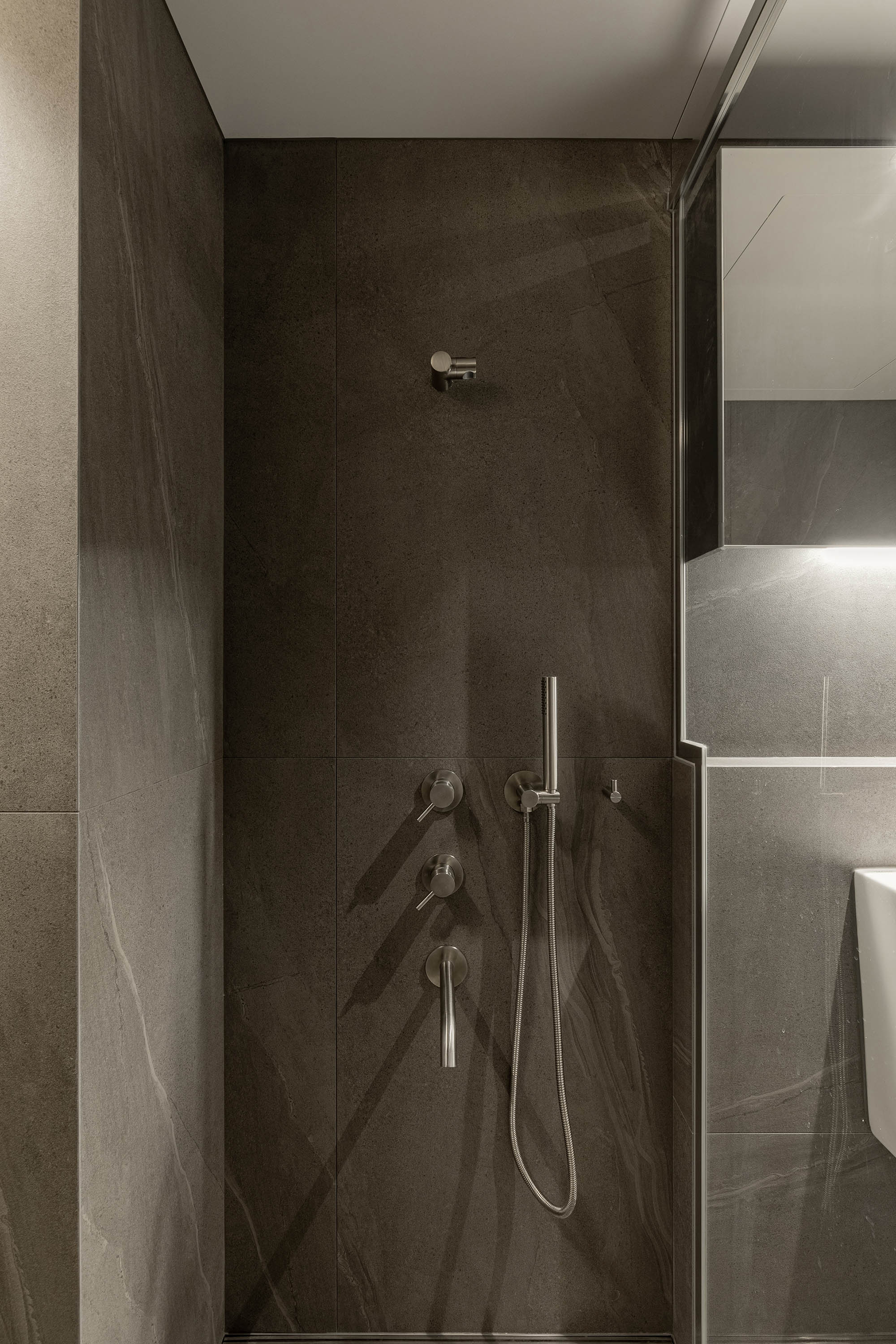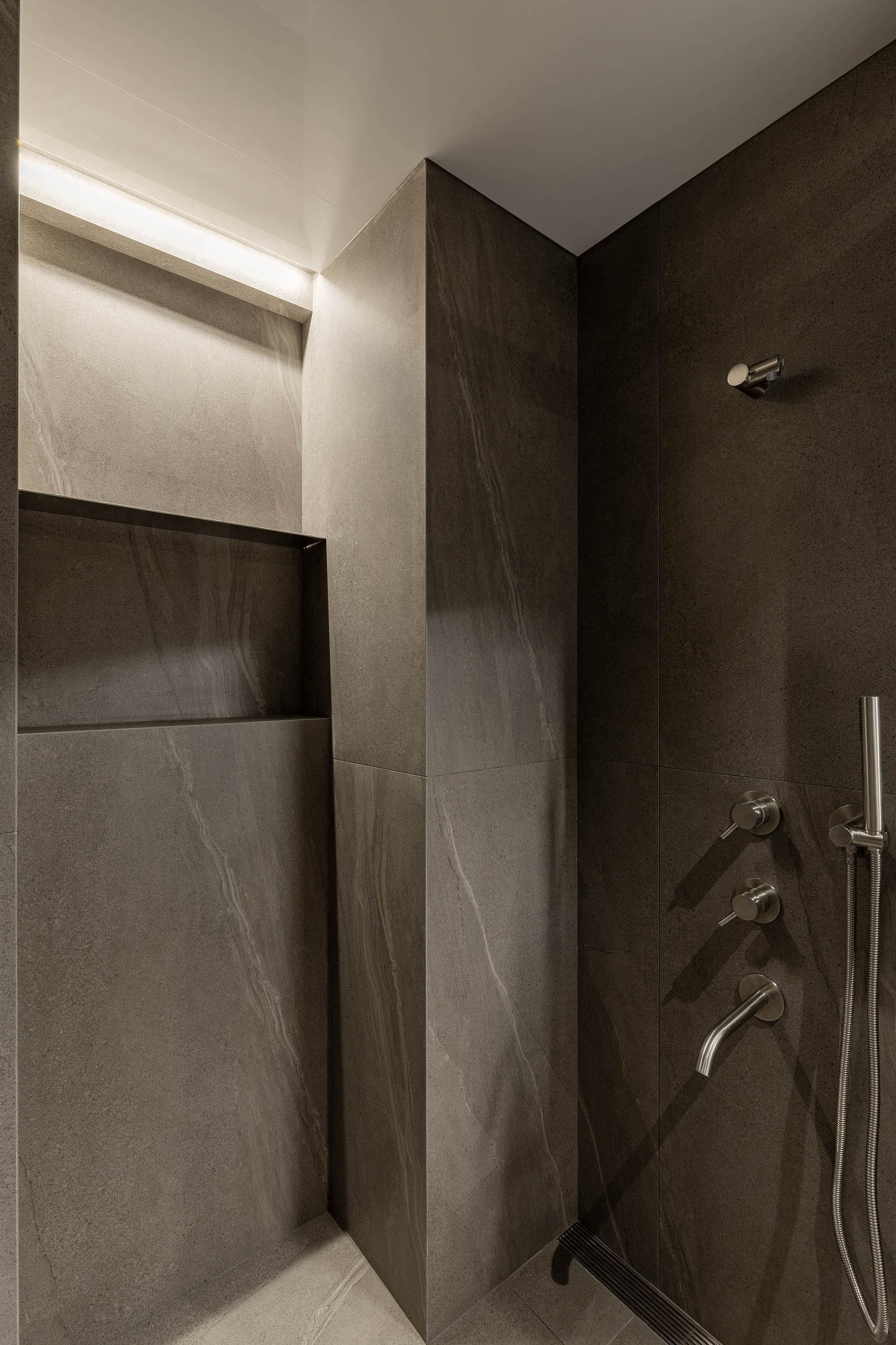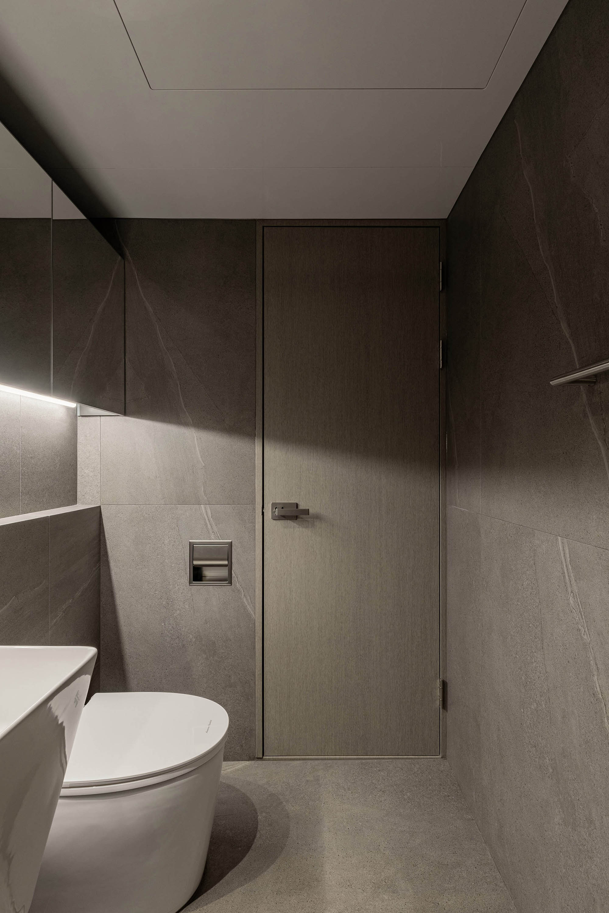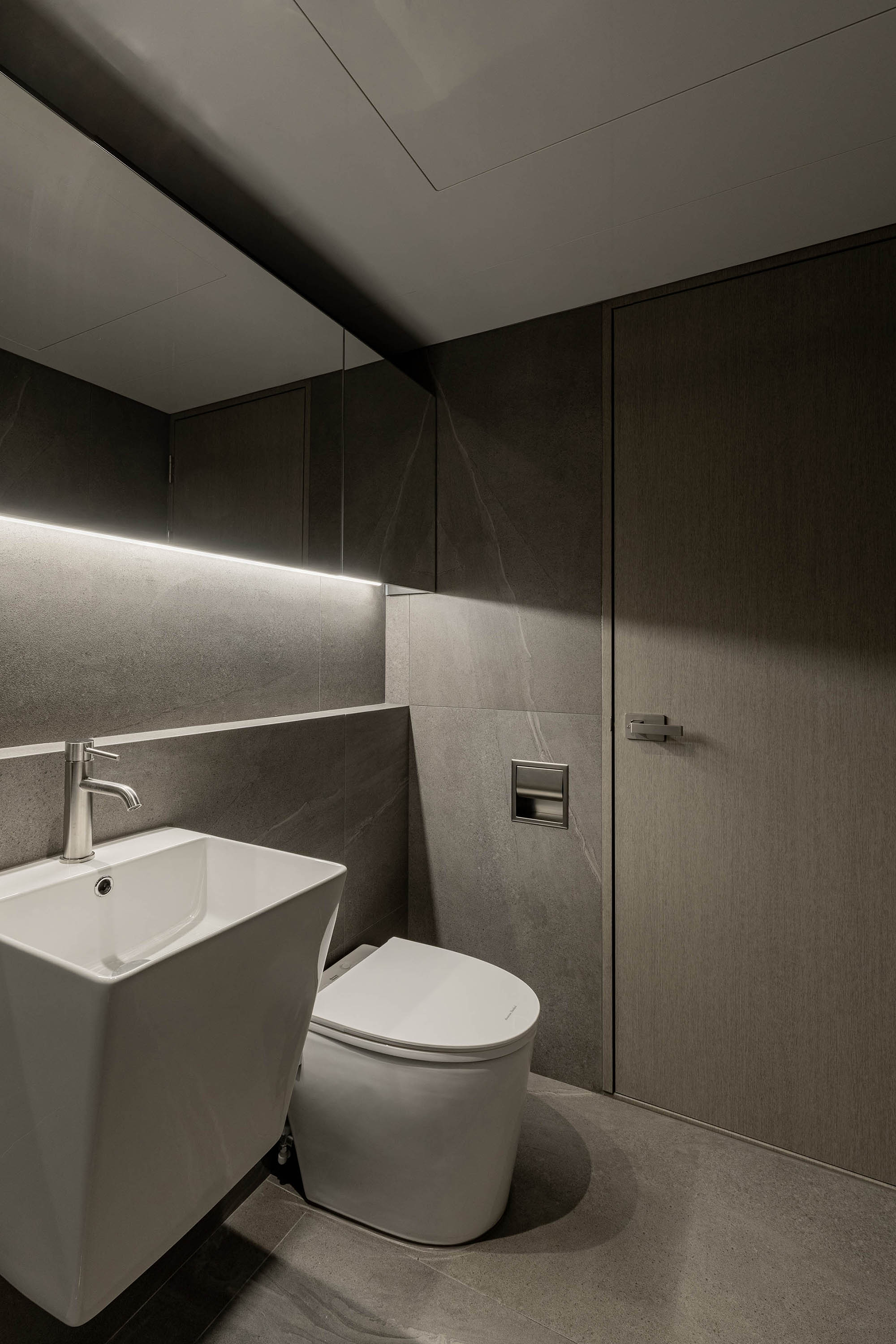 대면형 주방 레이아웃과 필름,타일,마루 인쇼스타일 인테리어