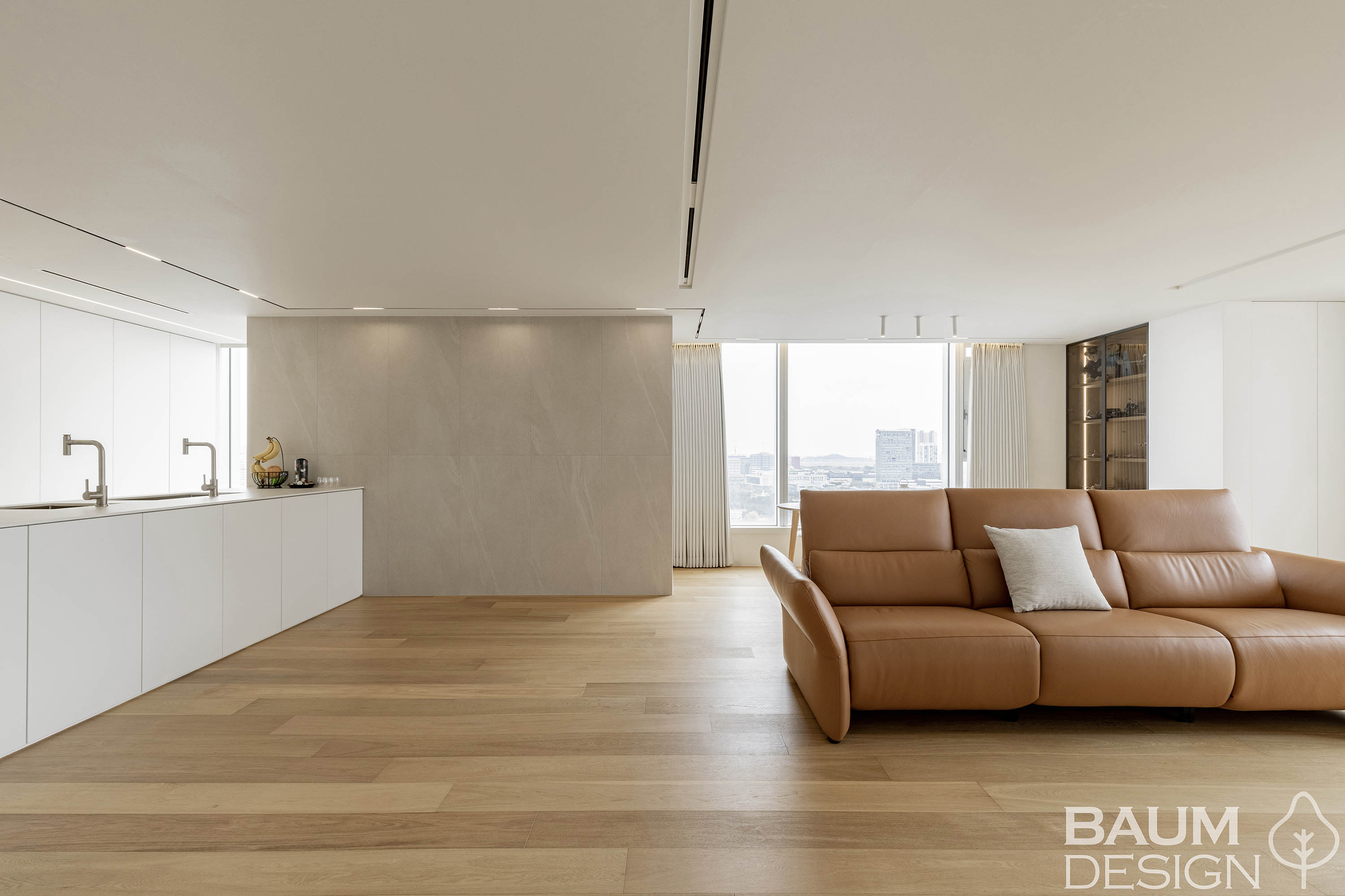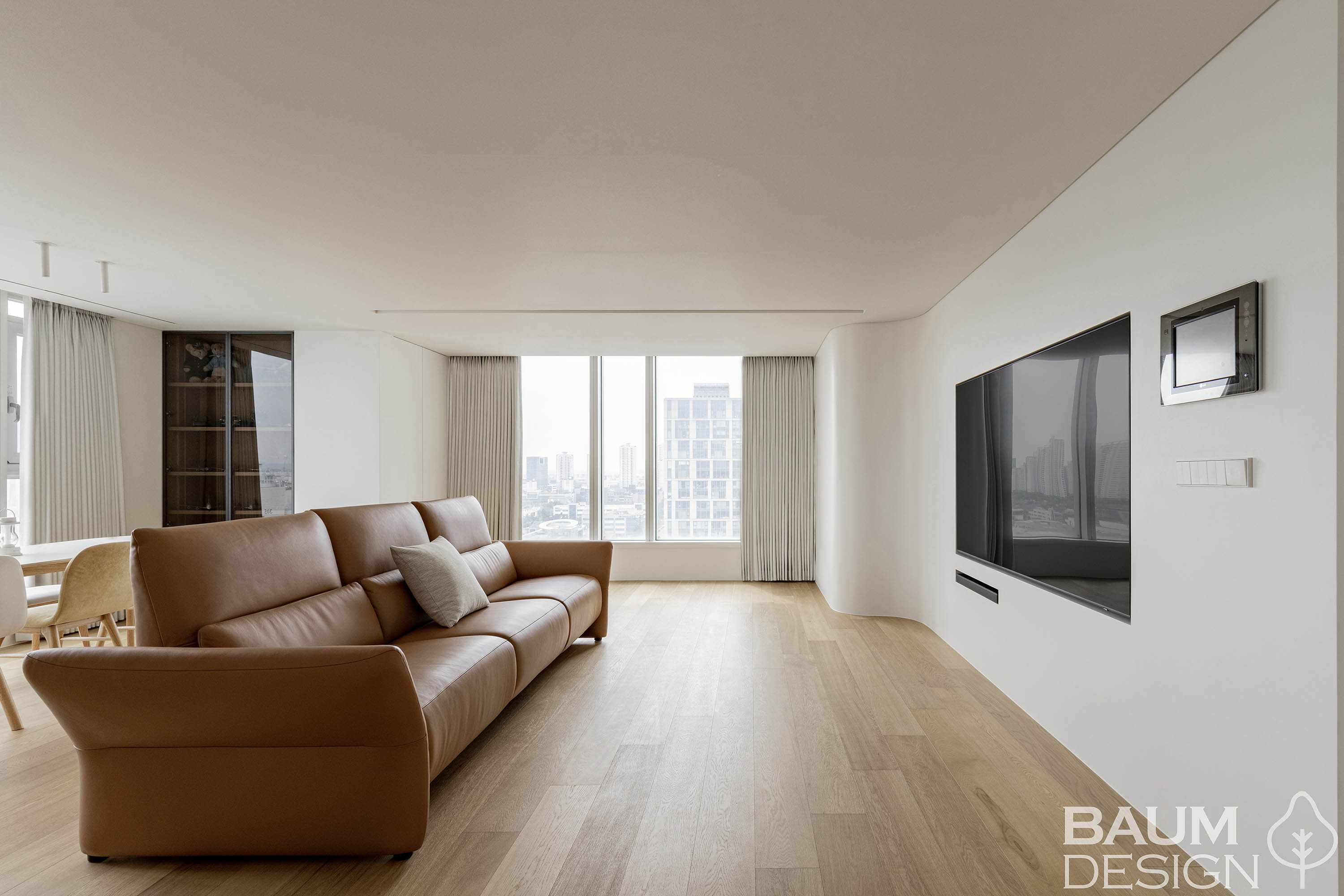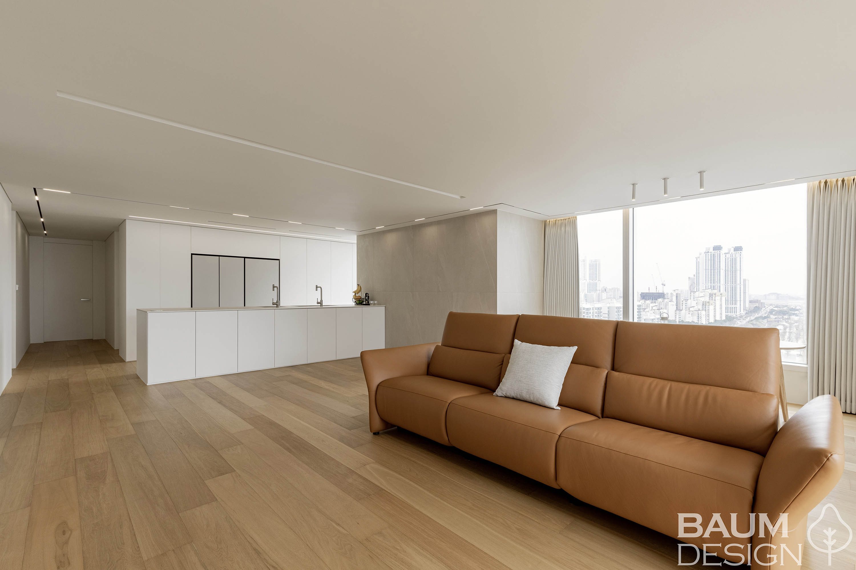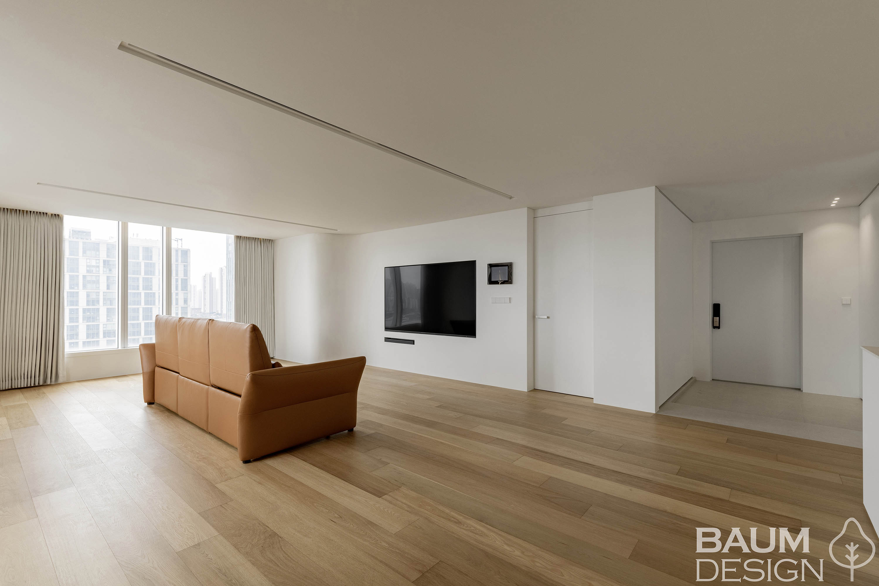 크리미한 도장과 고급스러운 원목마루가 조화로운 인테리어